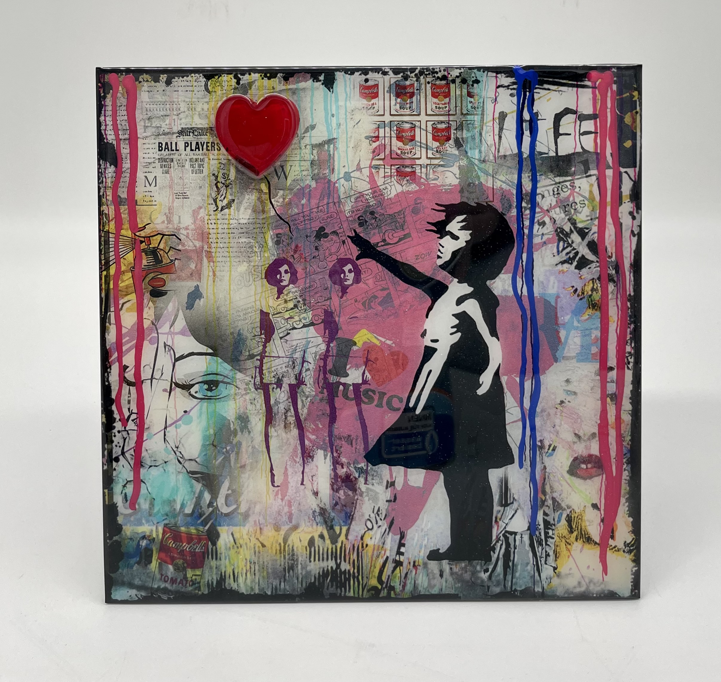 Mix-Media-Kunstwerk auf Aluminium überzogen mit Epoxidharz