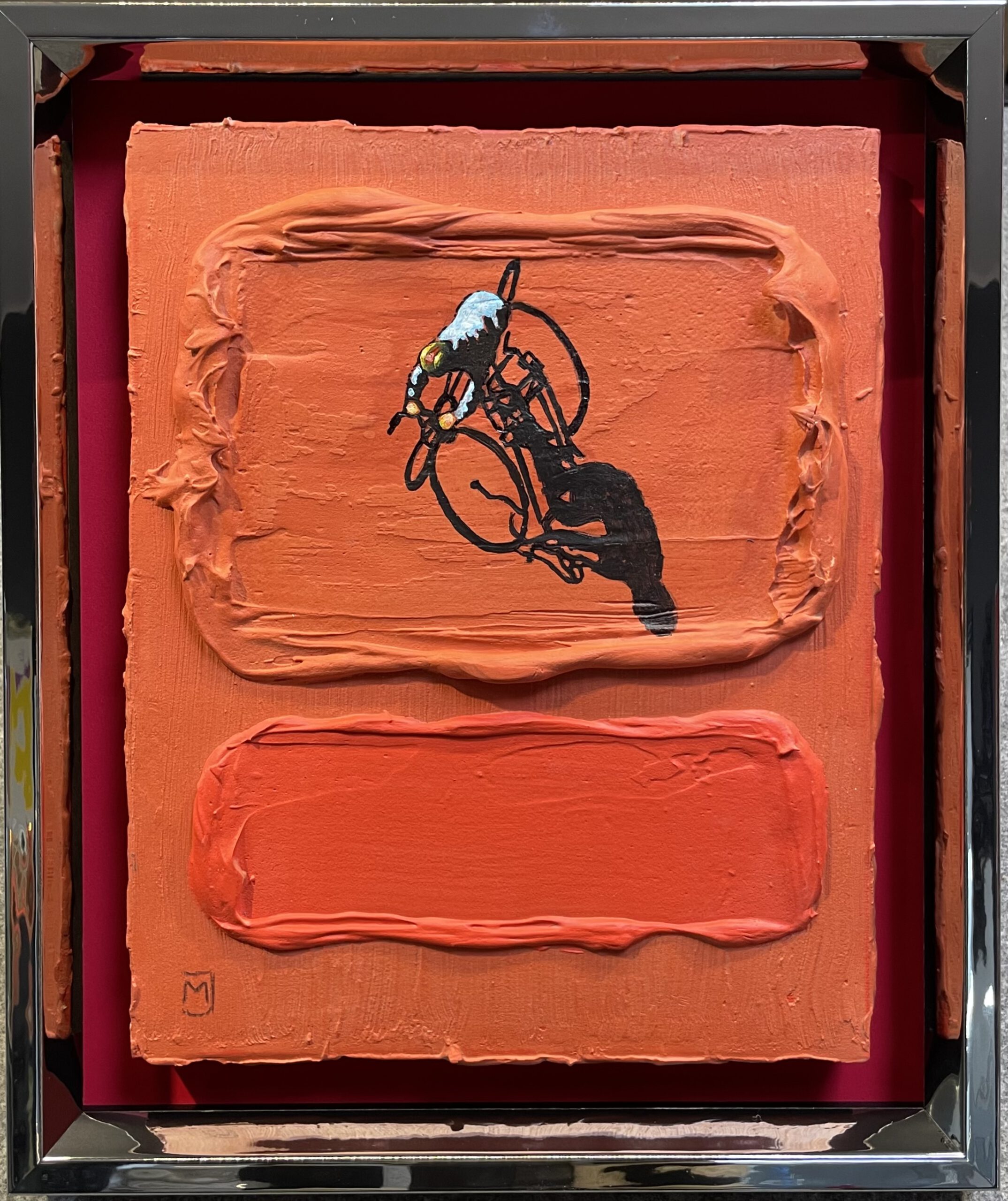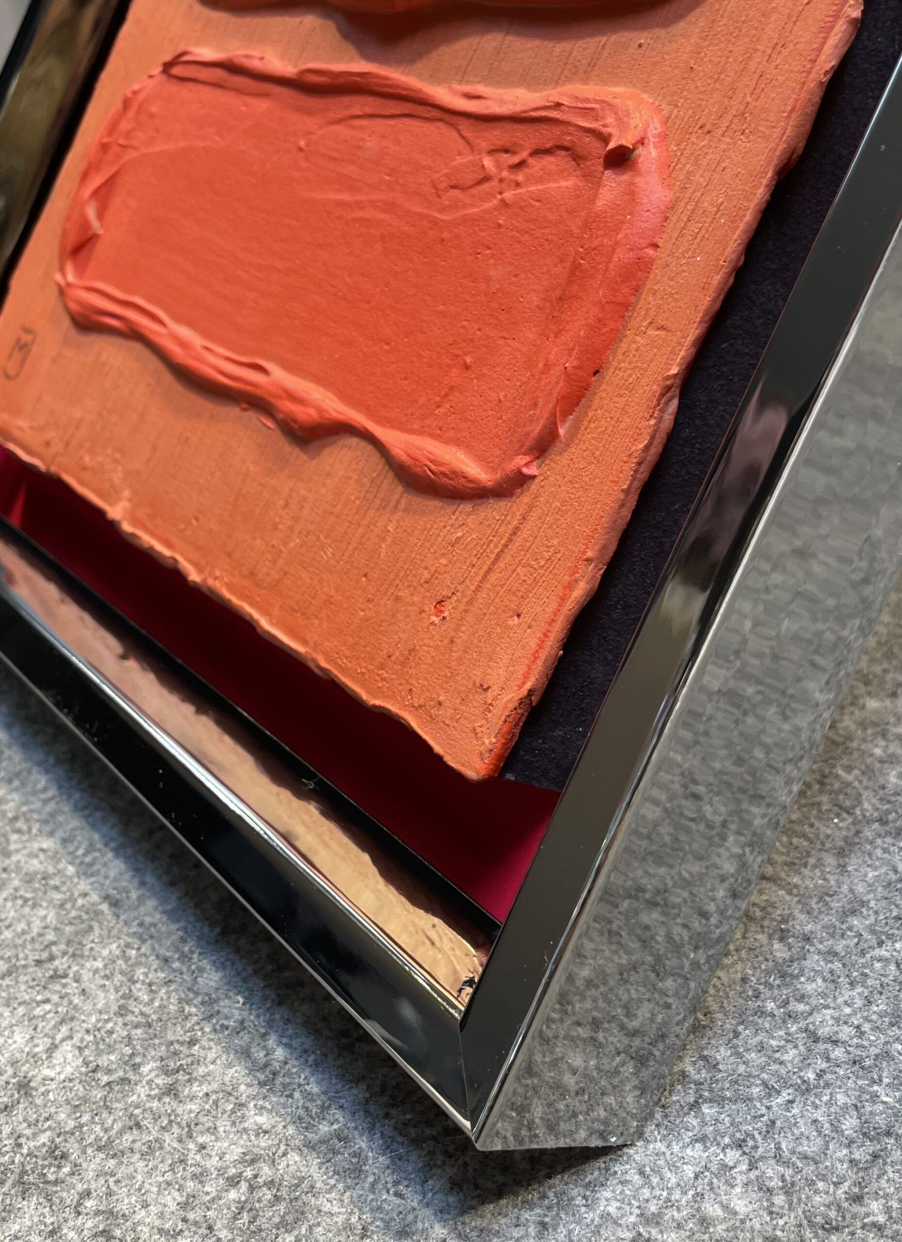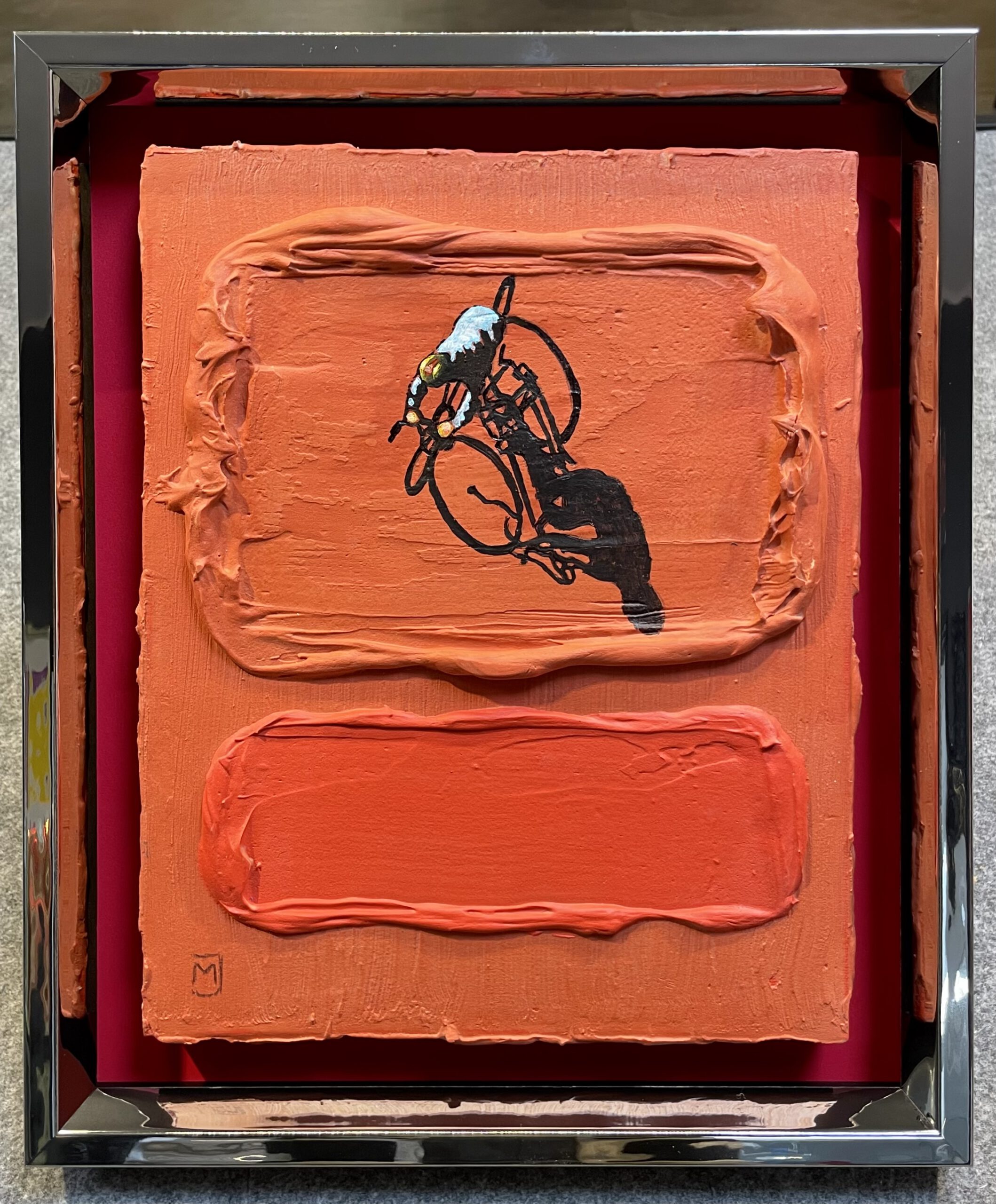 Bildmaß: 24 x 30 cm Außenmaß: 32,5 x 37,5 Acryl auf Holz Gerahmt im Holzrahmen mit Spiegelfolieneffekt Handsigniert unten rechts