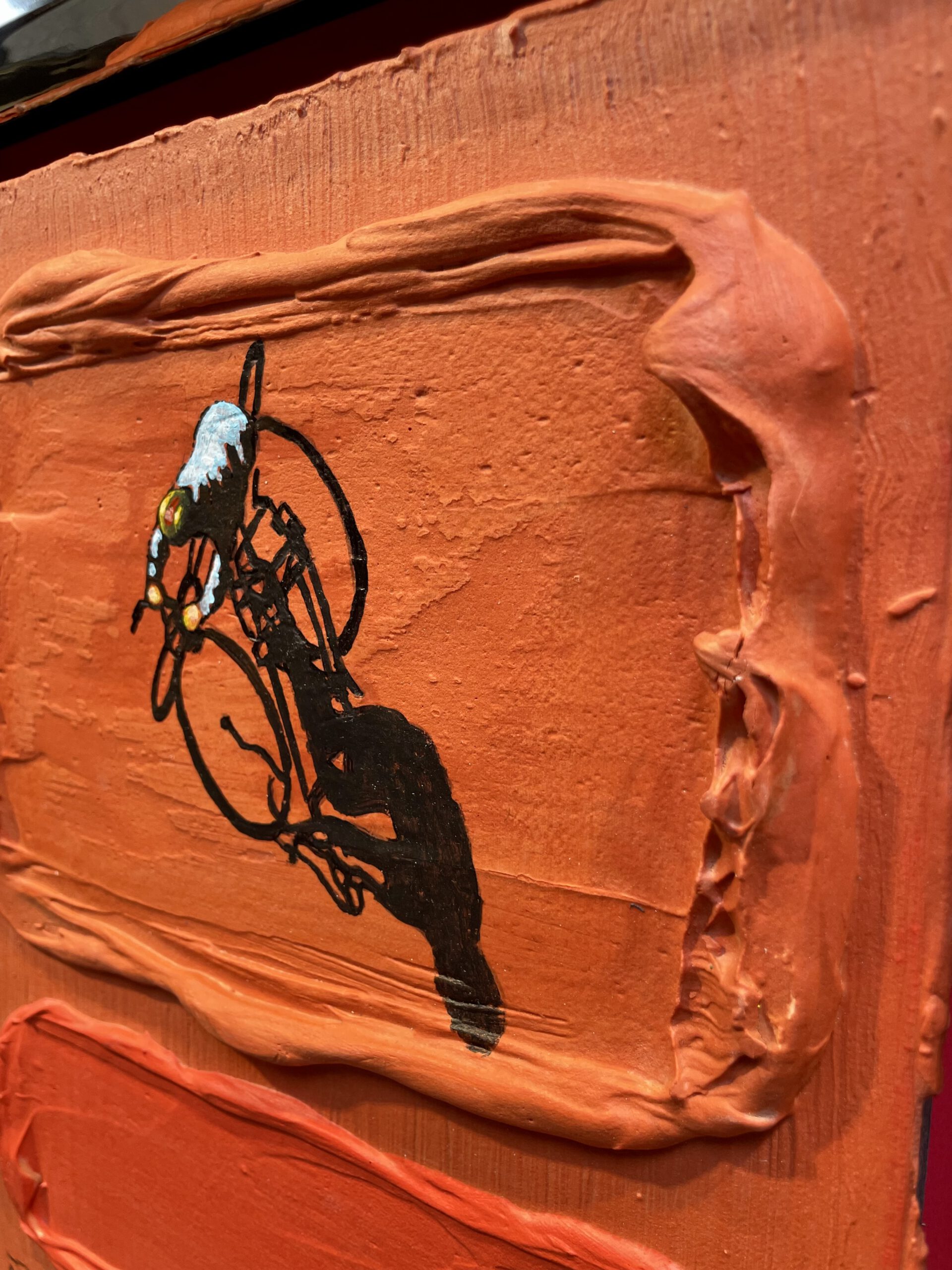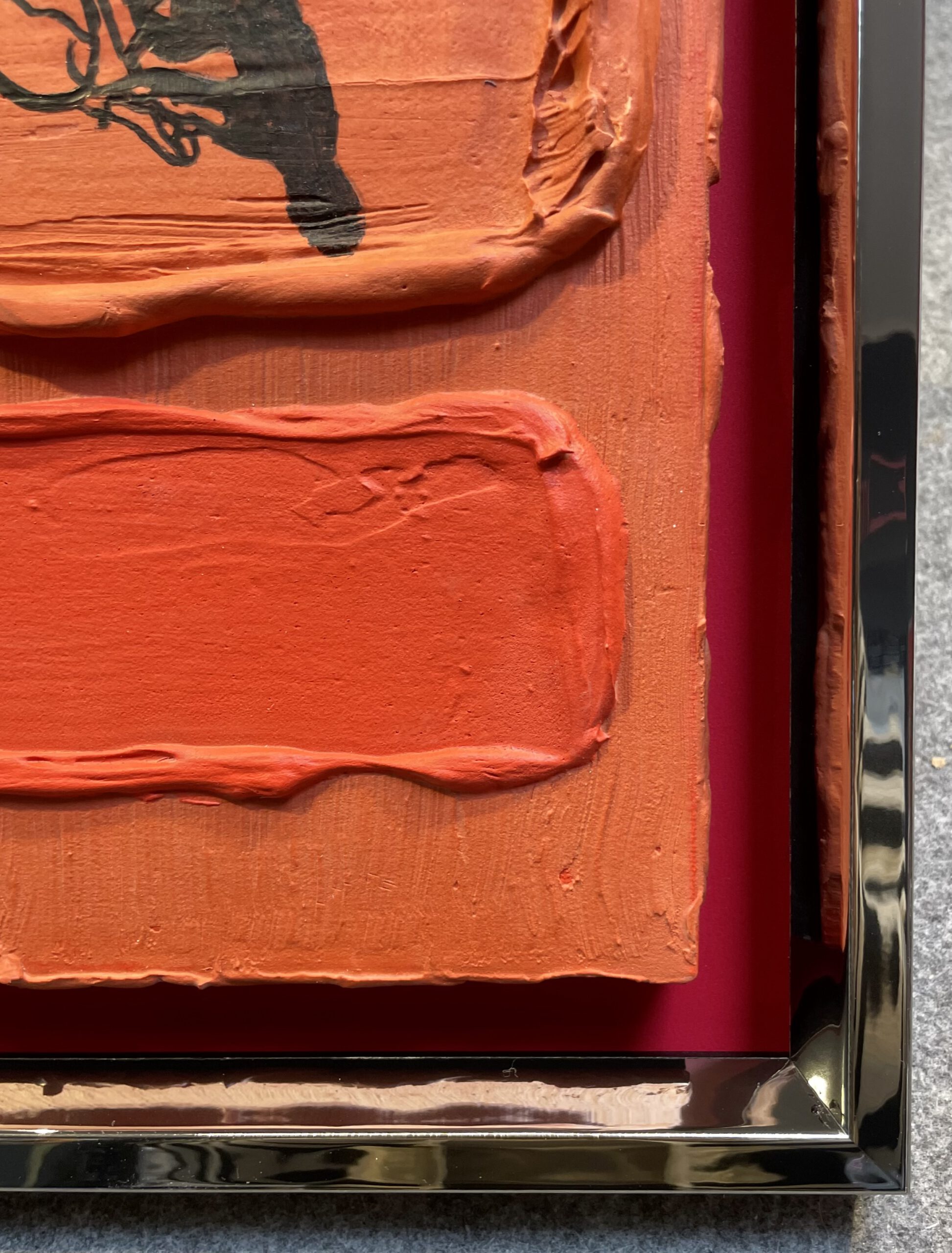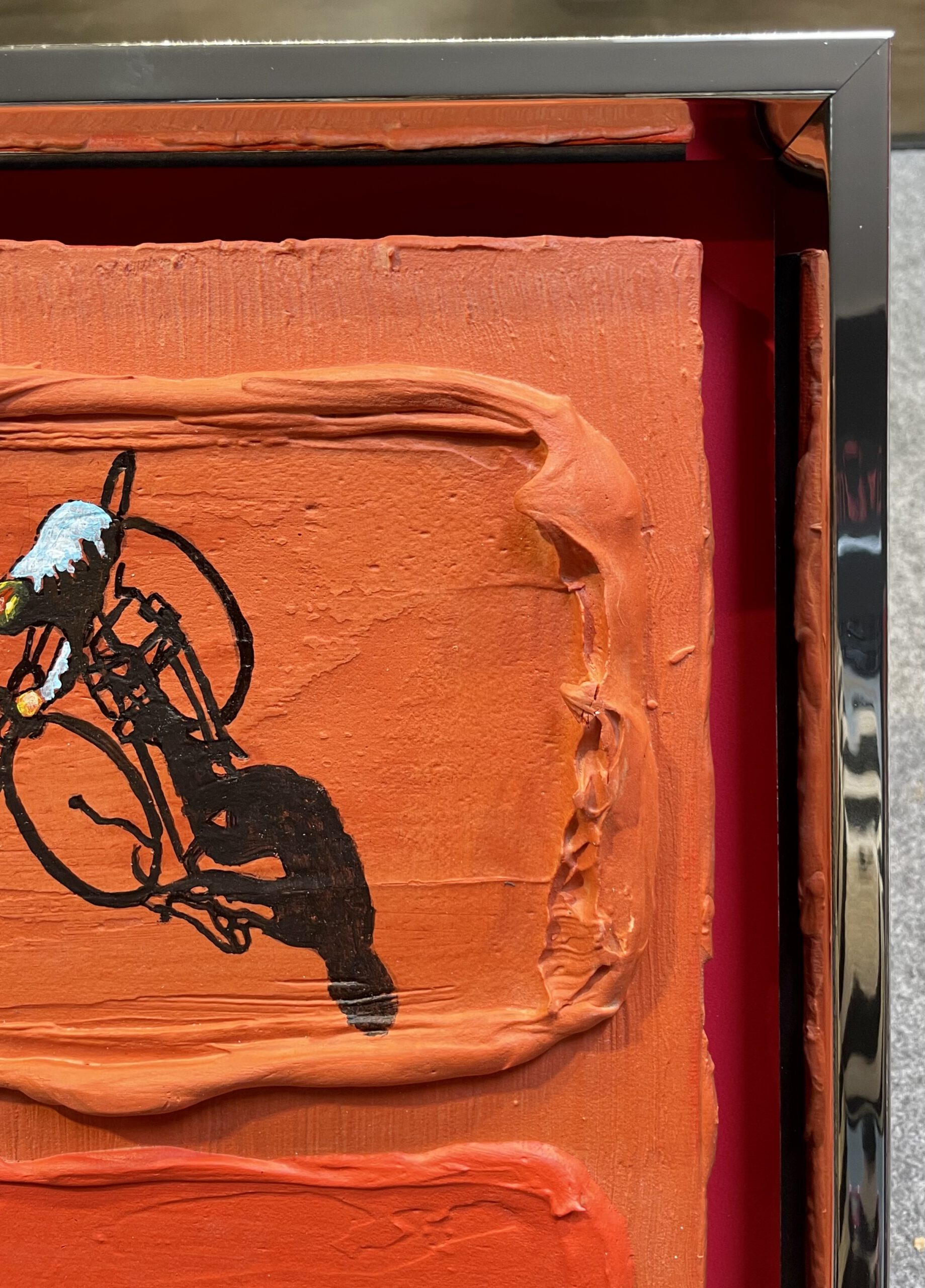 Bildmaß: 24 x 30 cm Außenmaß: 32,5 x 37,5 Acryl auf Holz Gerahmt im Holzrahmen mit Spiegelfolieneffekt Handsigniert unten rechts