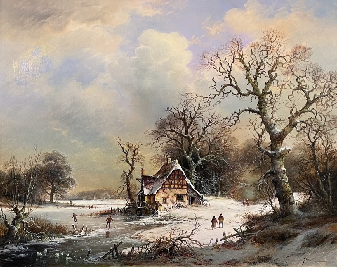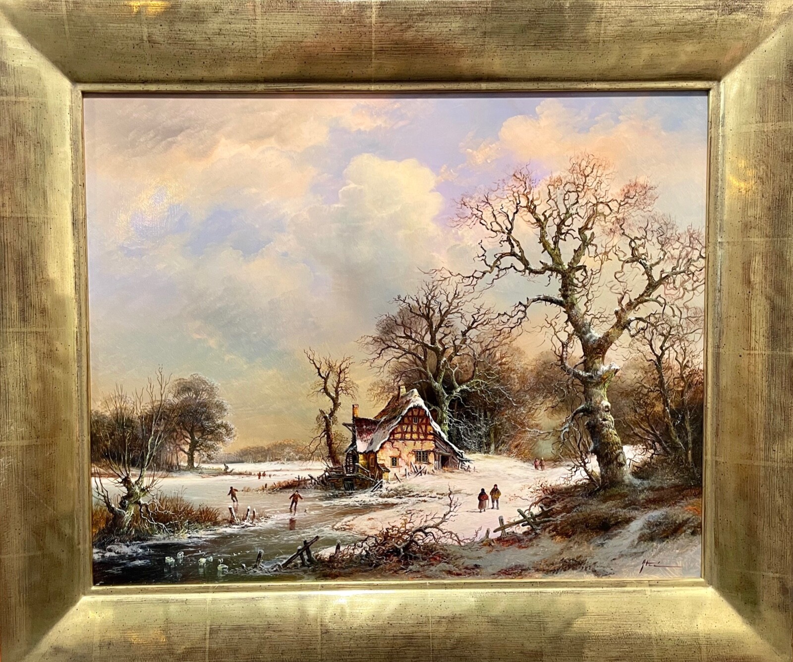 Außenmaß: 62 x 52 cm Innenmaß: 50 x 40 cm gerahmt im Echtgoldrahmen Gereinigt und gefirnisst handsigniert unten rechts